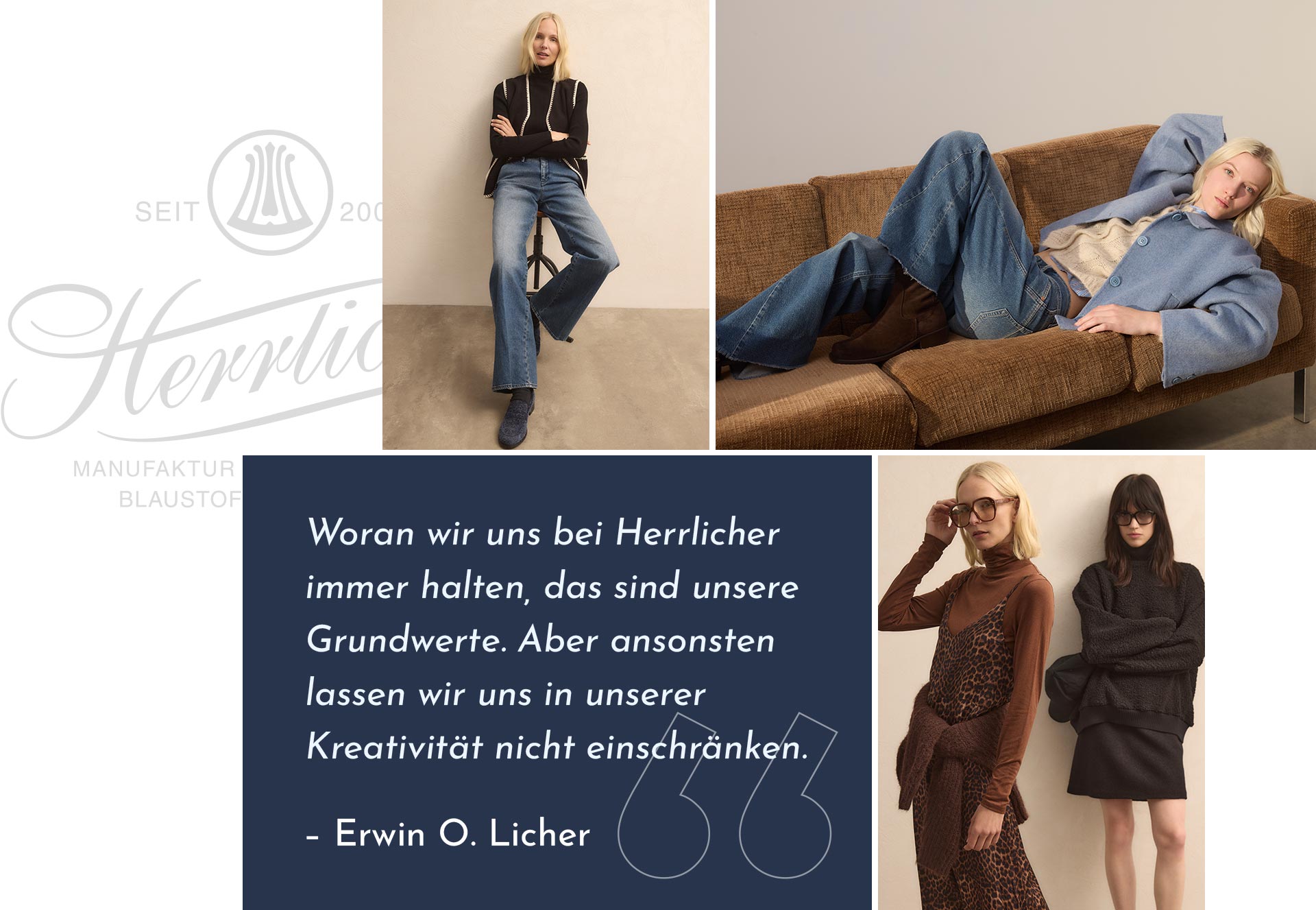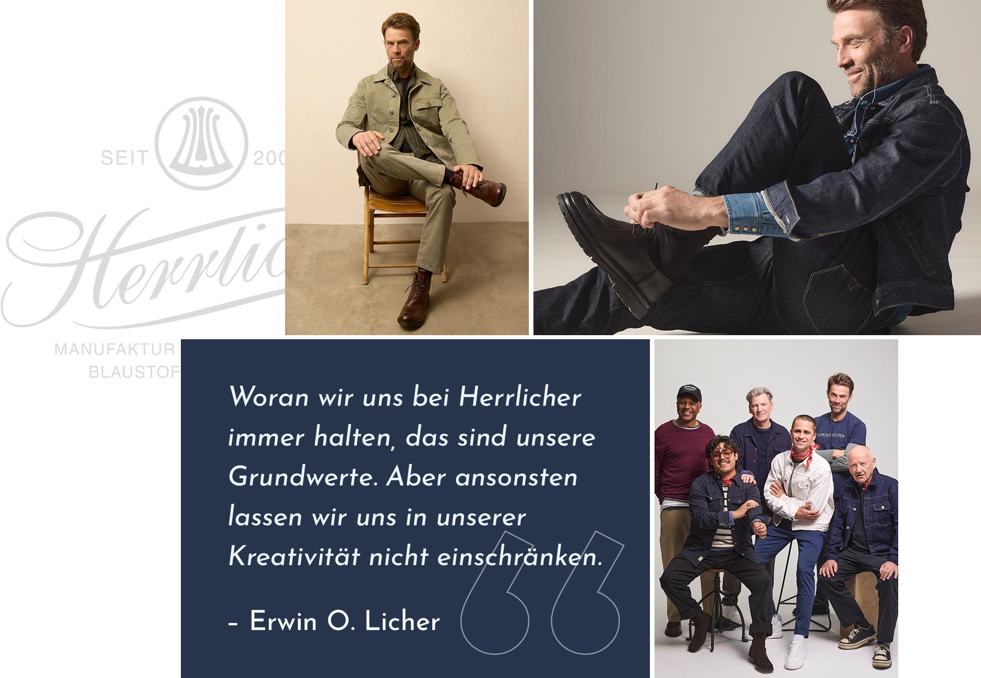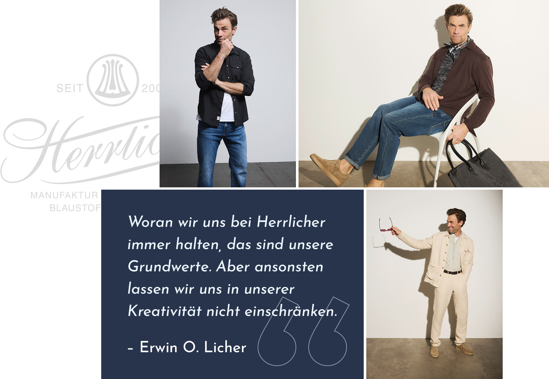 Dieser Stil hat Tradition. Denn hinter und für die Marke Herrlicher steht Herr Licher mit der umfassenden Erfahrung als Gestalter, Formgeber und Vordenker im Bereich hochwertiger Bekleidung. Seine hohen Ansprüche sind das Maß für eine stimmige Komposition aus perfekter Passform, bester Qualität und individuellem Stil.